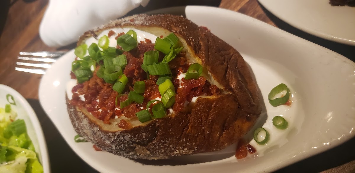 First time there celebrating my sis-in-law's birthday. The food was good, it's just I made the mistake of ordering the Nevada cut steak and I think it was too thick for my liking. The "rice pilaf" was more like a fried rice with veggies in it so that threw me off. The mashed potatoes were delicious! I also tried the aged ribeye steak from my sil and it was so good and more my style. Going to get that next time! Service was great! The atmosphere was good. It is kind of dark inside the establishment though so be careful and watch where you're walking! Also got a complimentary dessert for the birthday!