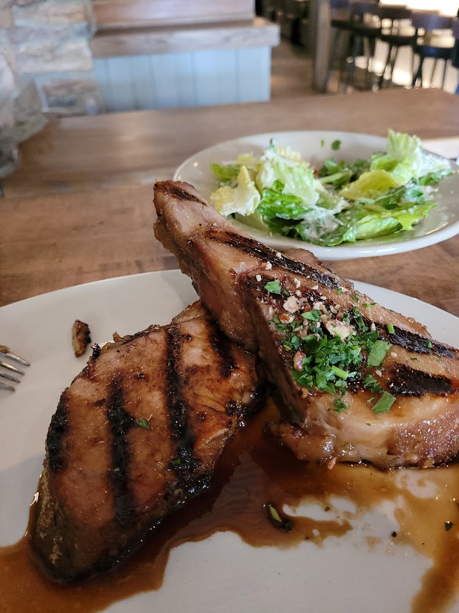 At the heart of Yosemite Ranch is its menu, which reflects a thoughtful approach to classic American steakhouse fare with fresh, unexpected touches. The scent of wood-grilled artichokes or perfectly aged rib eye fills the air, teasing the palate before you even sit down. Dishes like the herbaceous Santa Maria steak or the pecan-crusted pork chop invite a slower appreciation—rich flavors paired with familiar comforts, like a hearty baked potato or a crisp, well-crafted cocktail from the bar. Seafood options, such as delicate calamari steaks or a fresh yellowtail roll, offer a welcome contrast, rounding out a menu meant for savoring as much as satisfying hunger.